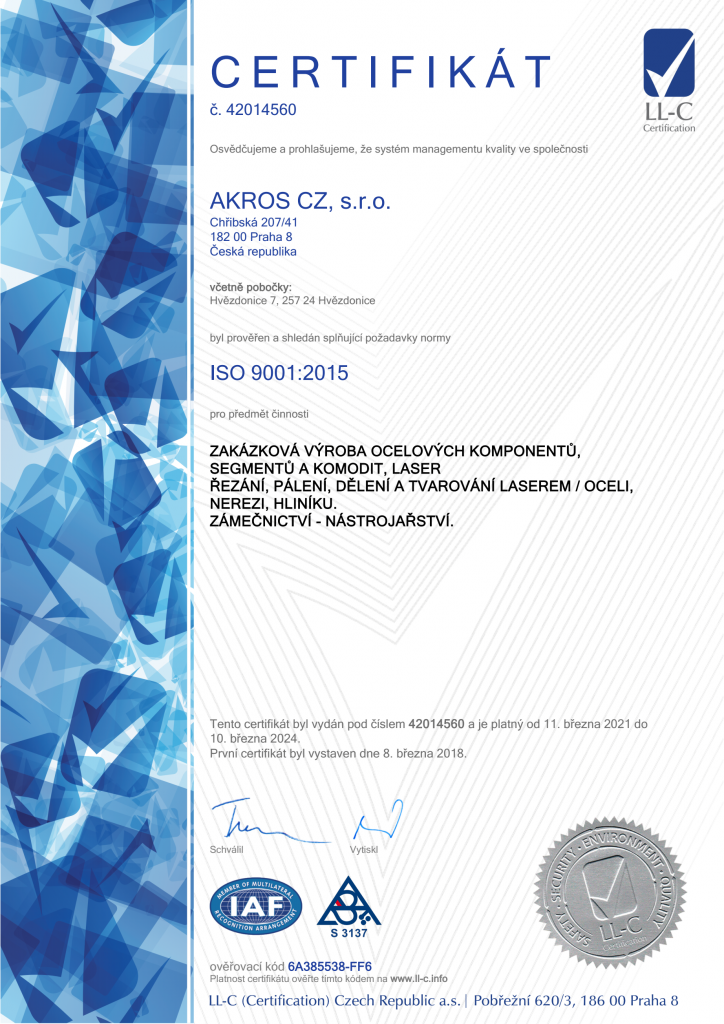 Certifikát ISO 9001:2015